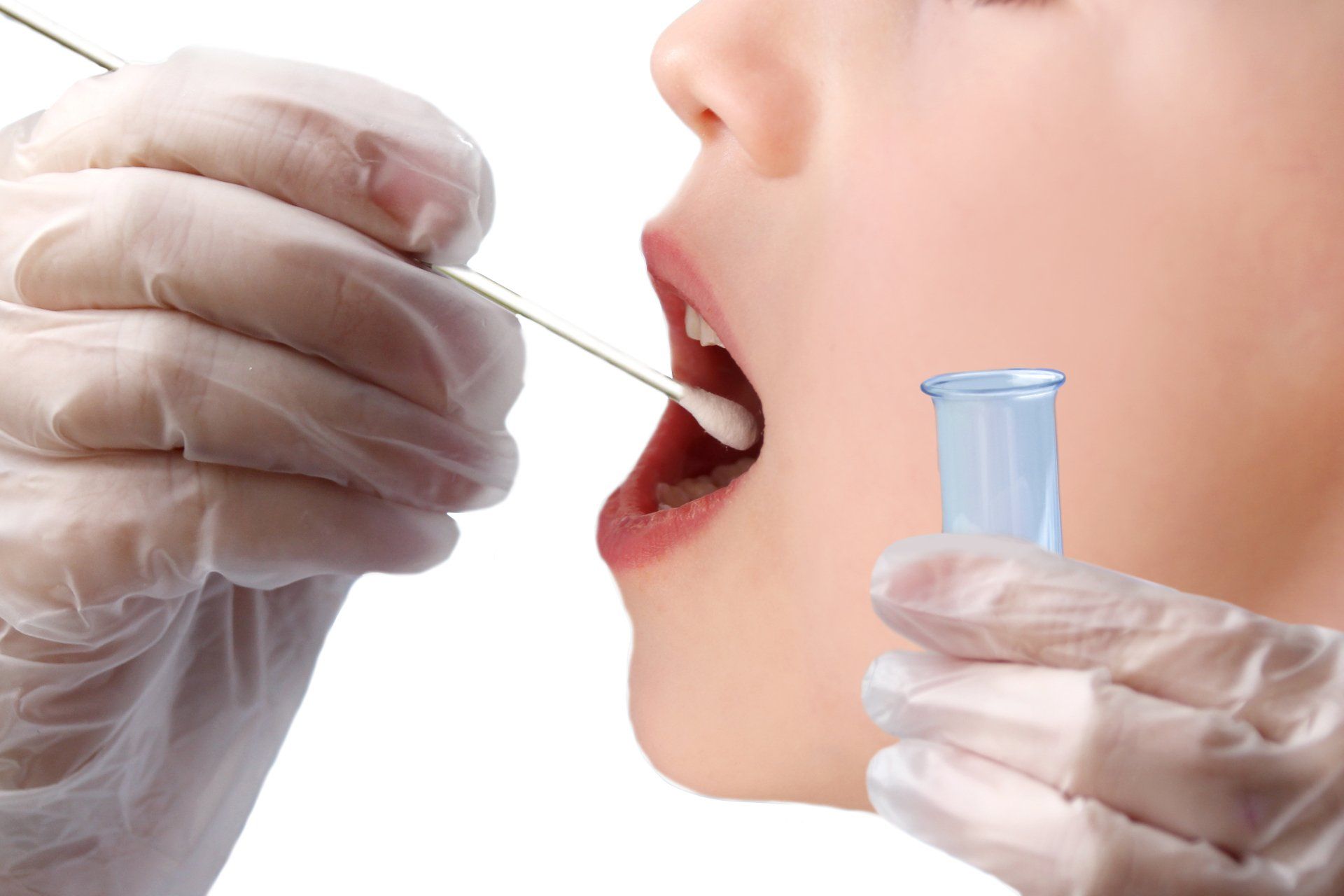Schritt 1: Die Probe wird mittels Abstrich-Tupfer aus Nase und Rachen eines Patienten entnommen. Es können auch beide Abstriche getrennt gemacht werden. Genauere Anweisungen zur Entnahme finden Sie hier.